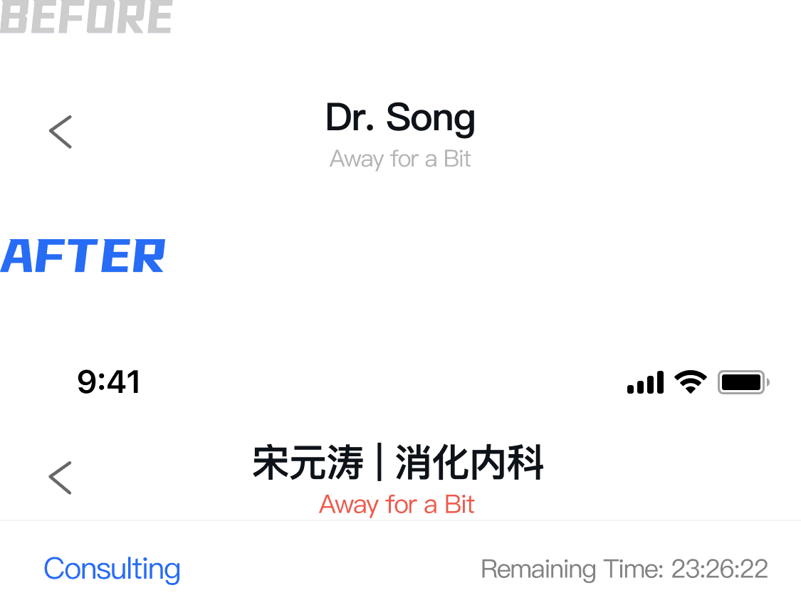 An alert for the doctor's 'temporarily away' status is provided to avoid unnecessary waiting for users.